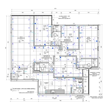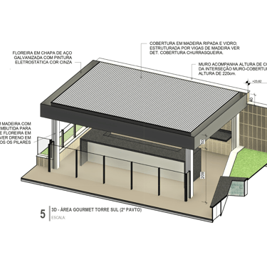 O escopo incluiu a elaboração do projeto executivo, com detalhamento dos apartamentos-tipo, áreas comuns, fachadas, piscinas, saunas e demais espaços coletivos. Também foram gerados quantitativos de materiais, especificações e acabamentos.