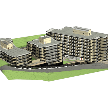 Modelagem BIM e compatibilização de projetos complementares de um conjunto residencial composto por três torres, com área de lazer completa e 116 unidades habitacionais, totalizando aproximadamente 19.000 m² de área construída.